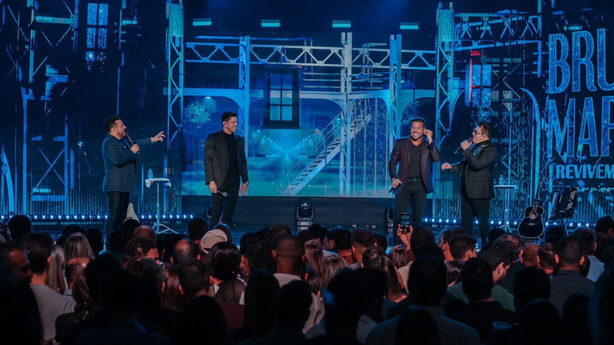 As duplas regravaram “Com Você”, uma música de 2013 de Henrique & Diego. “O público recebeu super bem, prova que a aposta foi certa”, elogiou Bruno.